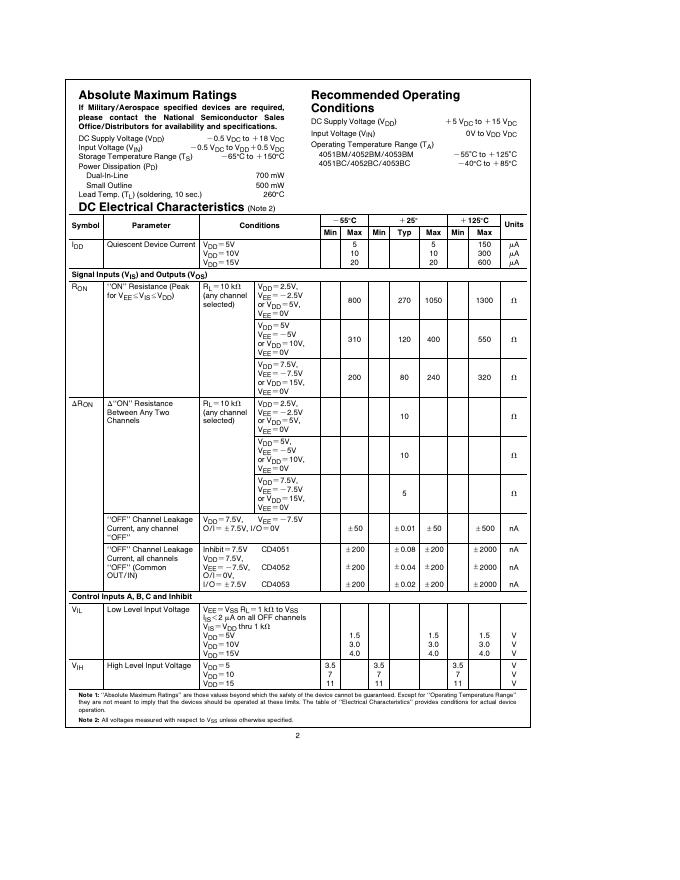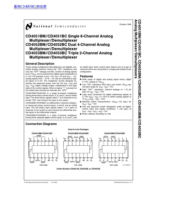 National Semiconductor CD4051BM/CD4051BC Single 8-Channel Analog 数据手册.pdf