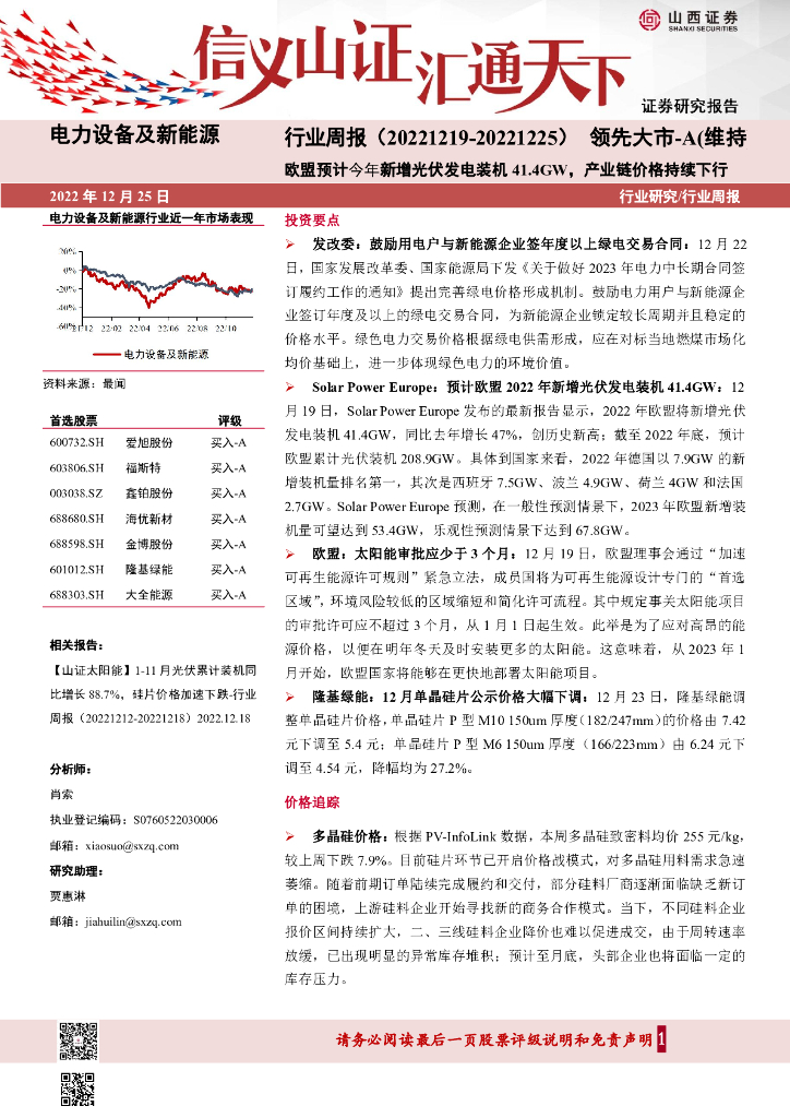 山西证券:电力设备及新能源行业周报:欧盟预计今年新增光伏发电装机41.4GW,产业链价格持续下行.pdf