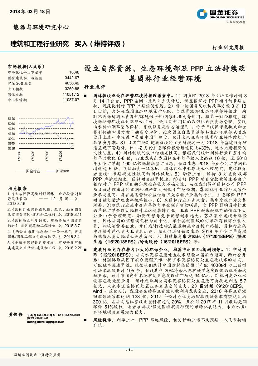 国金证券:建筑和工程行业研究:设立自然资源、生态环境部及PPP立法持续改善园林行业经营环境.pdf