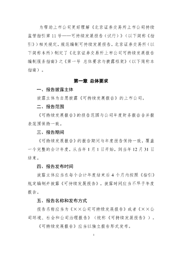 北京证券交易所上市公司可持续发展报告编制指南——第一号 总体要求与披露框架(征求意见稿).pdf