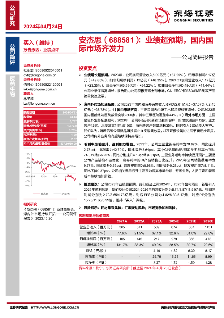 东海证券:安杰思(688581)-公司简评报告:业绩超预期,国内国际市场齐发力.pdf