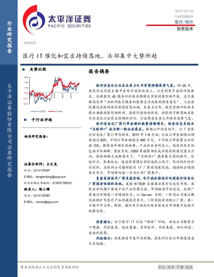太平洋证券:信息技术行业深度报告:医疗IT催化和需求持续落地、头部集中大势所趋.pdf