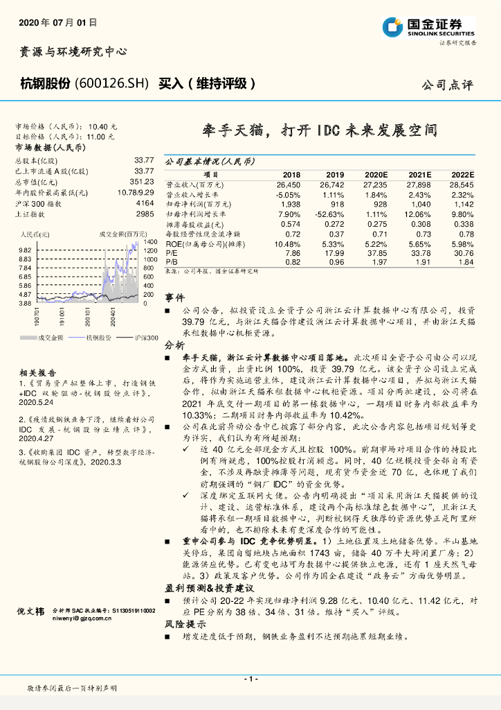 国金证券:杭钢股份(600126)-牵手天猫,打开IDC未来发展空间.pdf