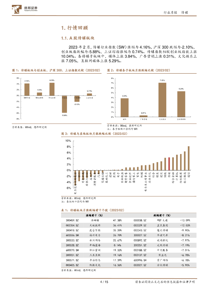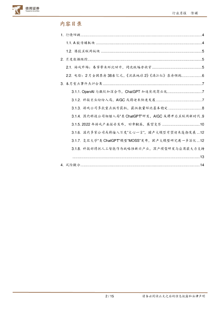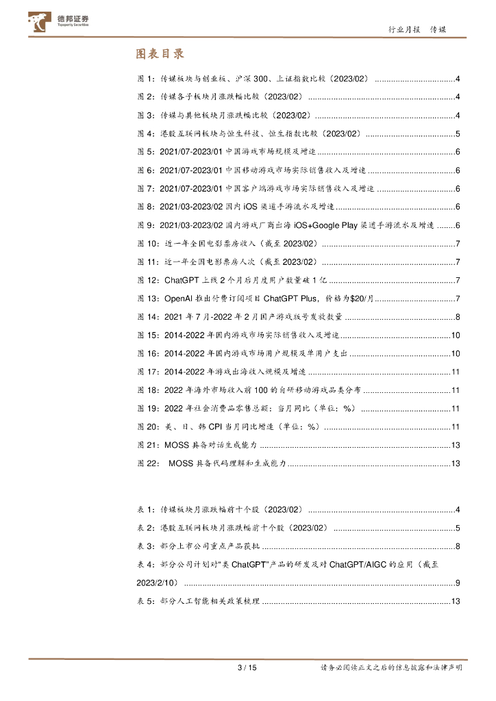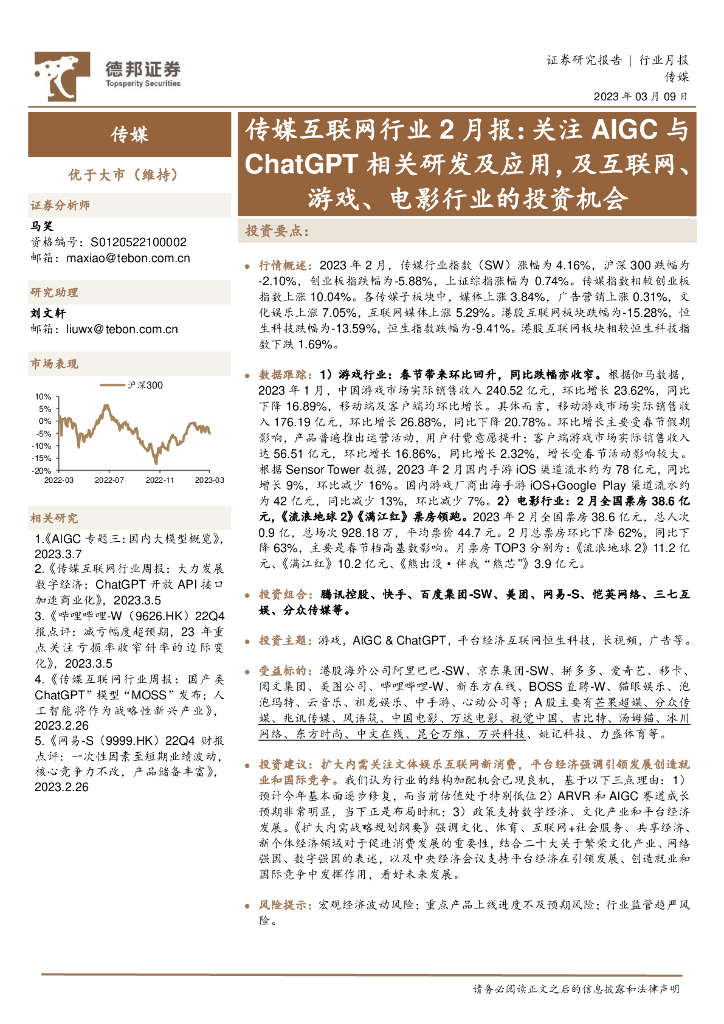 德邦证券:传媒互联网行业2月报:关注AIGC与ChatGPT相关研发及应用,及互联网、游戏、电影行业的投资机会.pdf