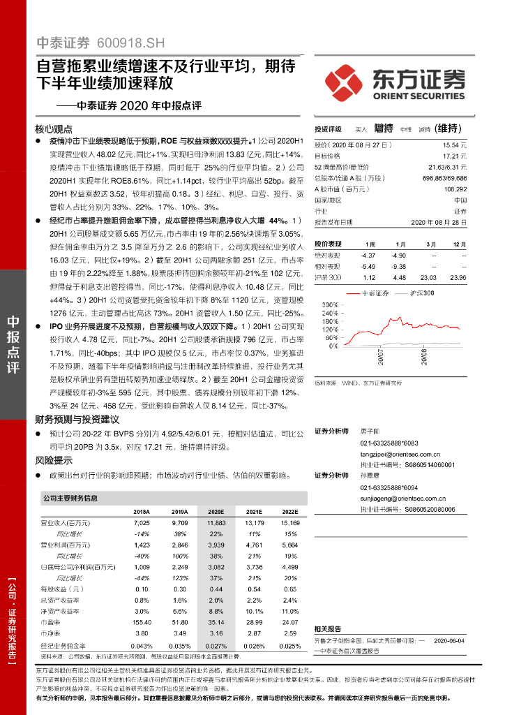 东方证券:中泰证券2020年中报点评:自营拖累业绩增速不及行业平均,期待下半年业绩加速释放.pdf