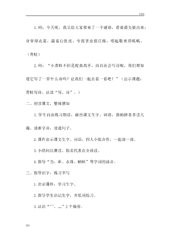 一年级语文(教案1)7 青蛙写诗教学设计.doc