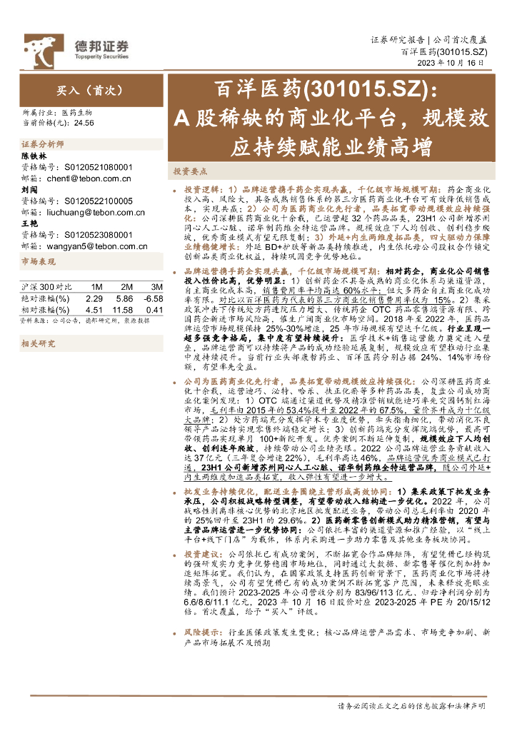 德邦证券:百洋医药(301015)-A股稀缺的商业化平台,规模效应持续赋能业绩高增.pdf