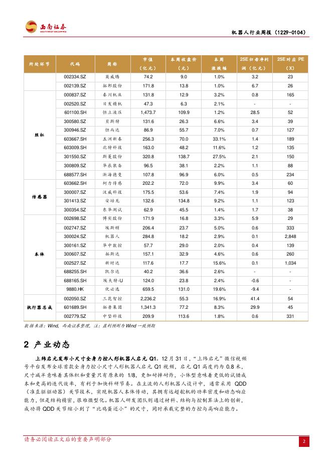 西南证券:机器人行业周报:上纬启元发布小尺寸人形机器人启元Q1,哈工大联合博实股份发布人形机器人最新成果.pdf