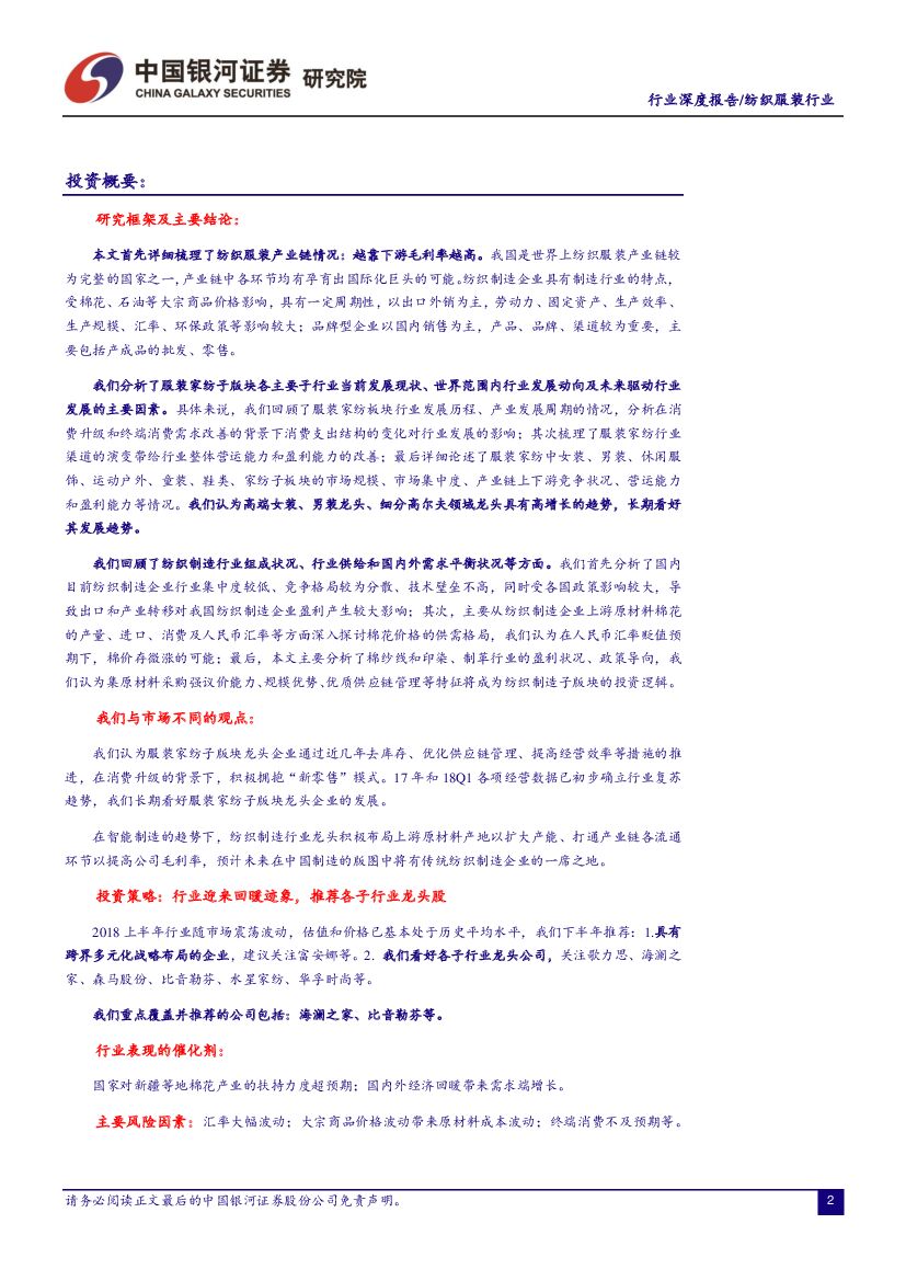 中国银河:纺织服装行业深度报告暨2018年中期投资策略:“服装智造”:分化行情下,坚守龙头价值.pdf