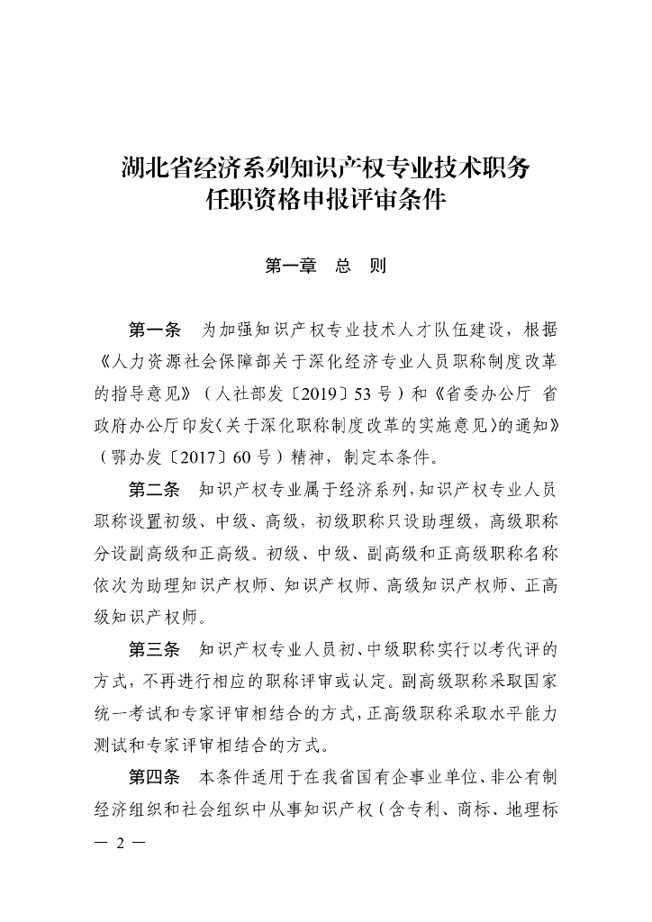 湖北省经济系列知识产权专业技术职务任职资格申报评审条件.pdf