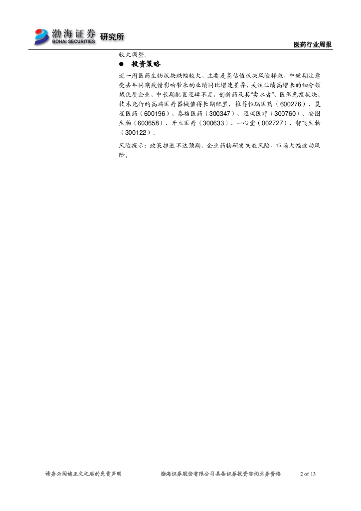 渤海证券:医药行业周报:中短期关注业绩同比高增长的细分领域优质企业.pdf
