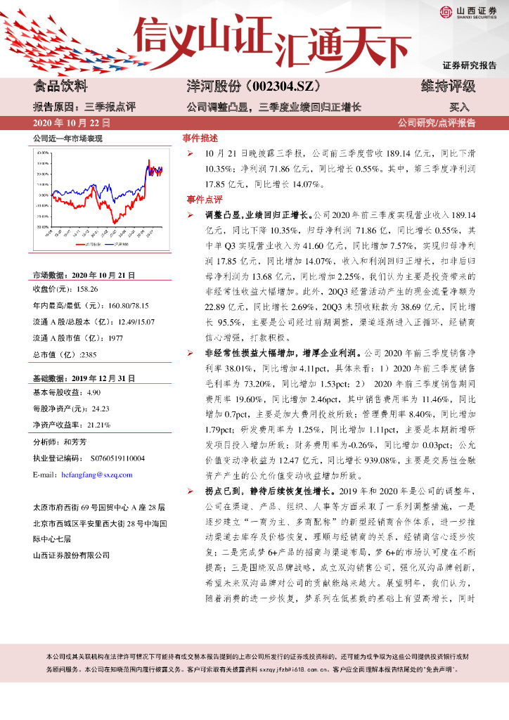 山西证券:洋河股份(002304)-公司调整凸显,三季度业绩回归正增长.pdf