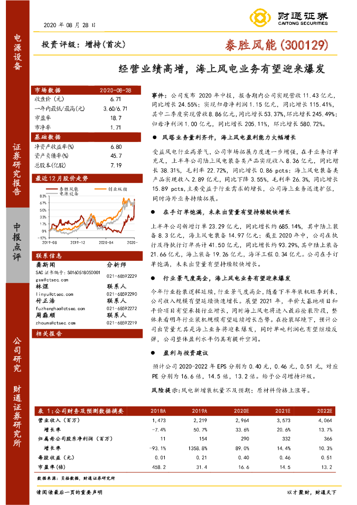 财通证券:泰胜风能(300129)-经营业绩高增,海上风电业务有望迎来爆发.pdf