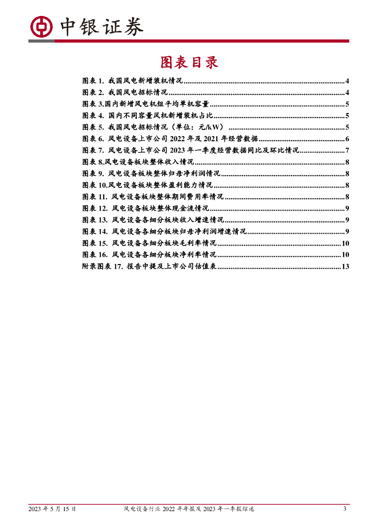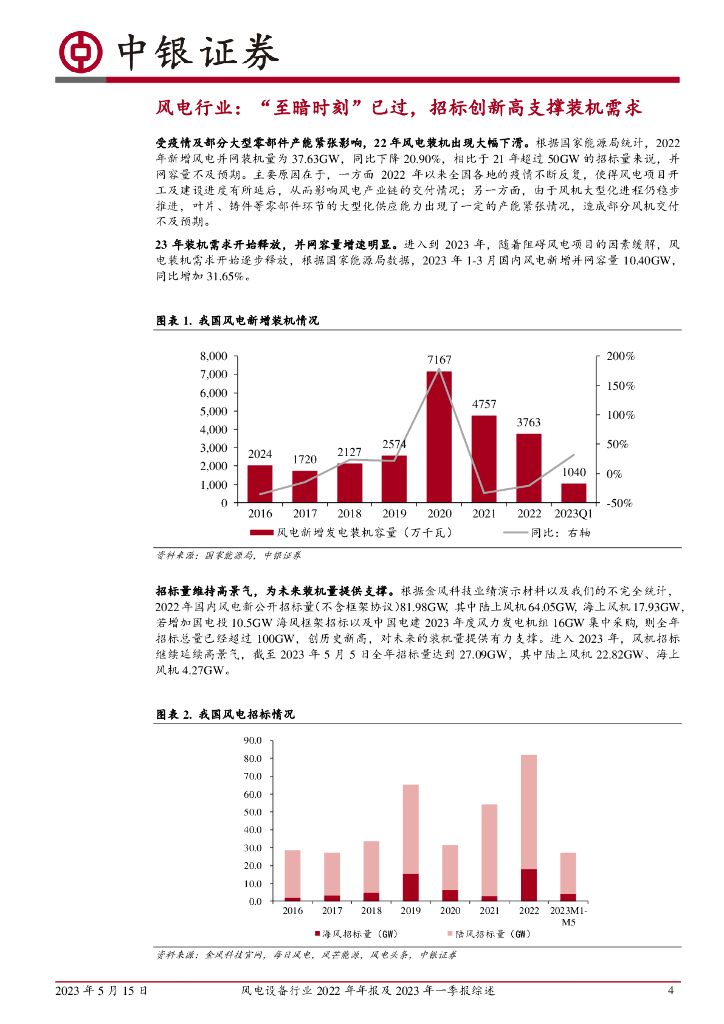 中银证券:风电设备行业2022年年报及2023年一季报综述:23Q1零部件业绩拐点已现,全年装机高增行业有望迎量利齐升.pdf