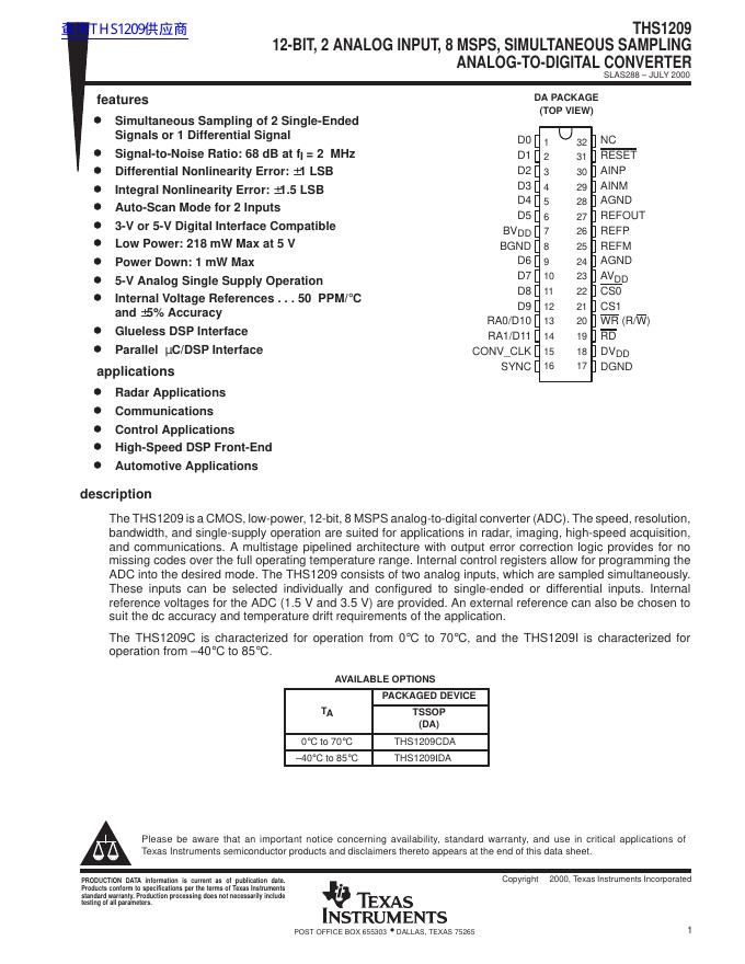 TEXAS INSTRUMENTS THS1209 数据手册.pdf
