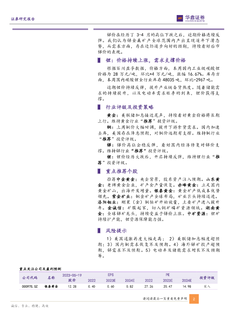 华鑫证券:有色金属行业周报:鲍威尔发言或再次暗示美联储不再加息,助推黄金价格反弹.pdf