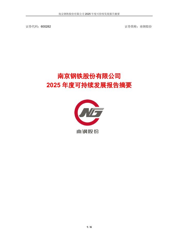 600282-南钢股份:南京钢铁股份有限公司2025年度可持续发展报告摘要.pdf