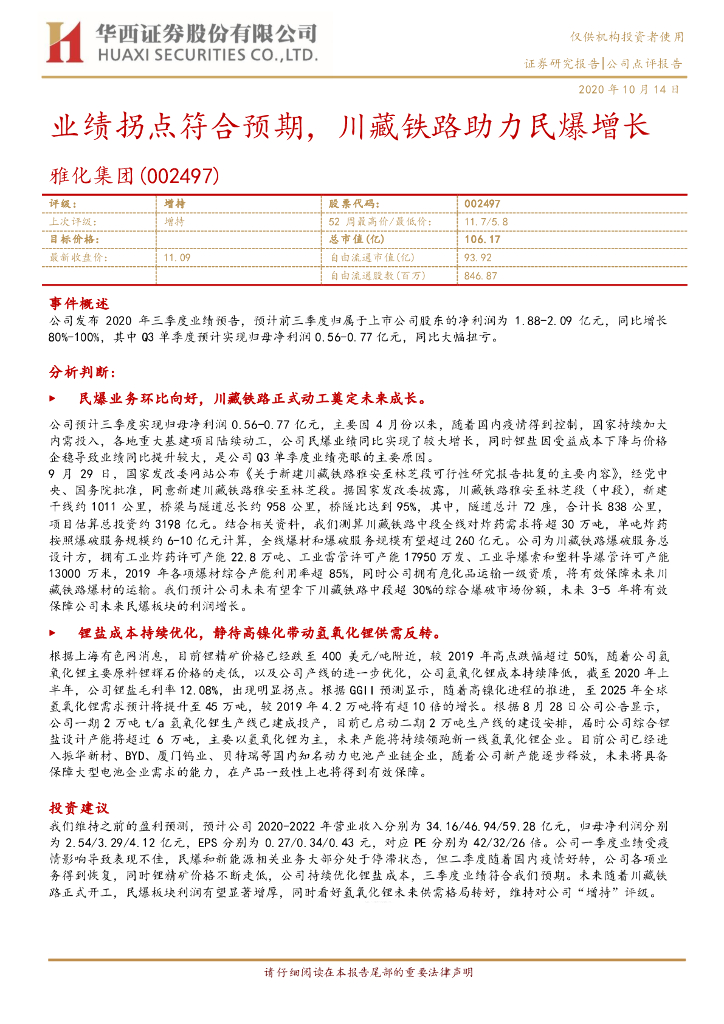 华西证券:雅化集团(002497)-业绩拐点符合预期,川藏铁路助力民爆增长.pdf