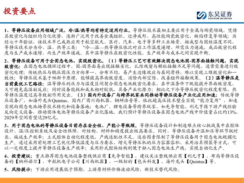 东吴证券:固态电池设备专题深度系列一:等静压设备——制约固态电池量产的关键瓶颈.pdf