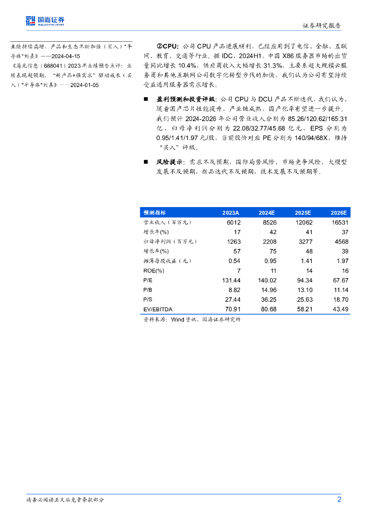 国海证券:海光信息(688041)-科创板公司动态研究:Q3业绩倍数增长,存货+预付款展现成长信心.pdf