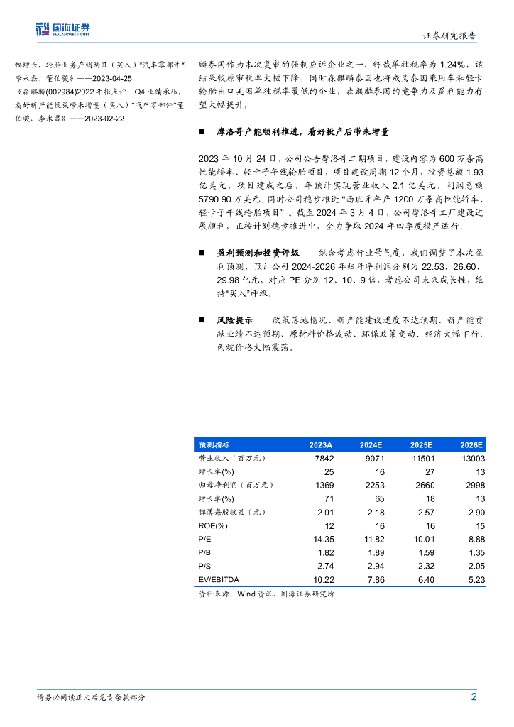 国海证券:森麒麟(002984)-2024年一季报点评:净利率环比显著提升,摩洛哥项目进展顺利.pdf