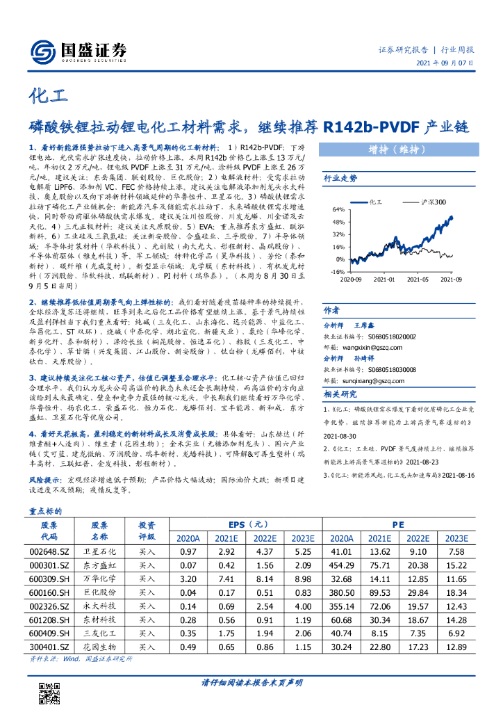 国盛证券:磷酸铁锂拉动锂电化工材料需求,继续推荐R142b-PVDF产业链.pdf