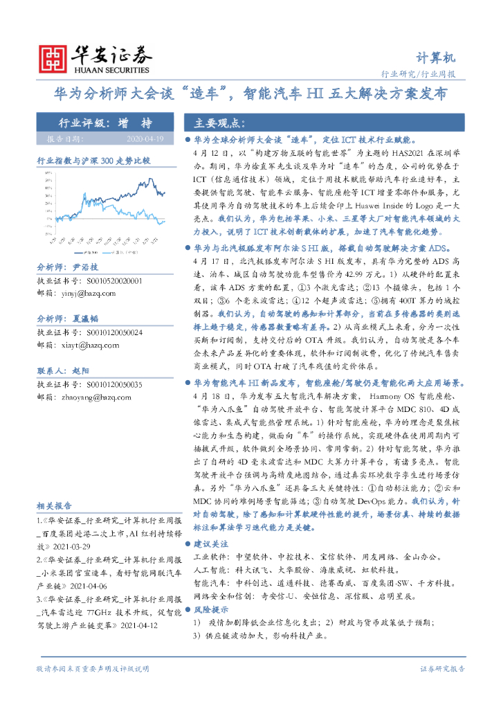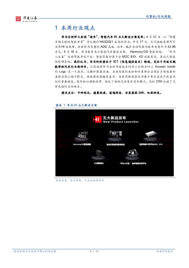 华安证券:计算机行业周报:华为分析师大会谈“造车”,智能汽车HI五大解决方案发布.pdf