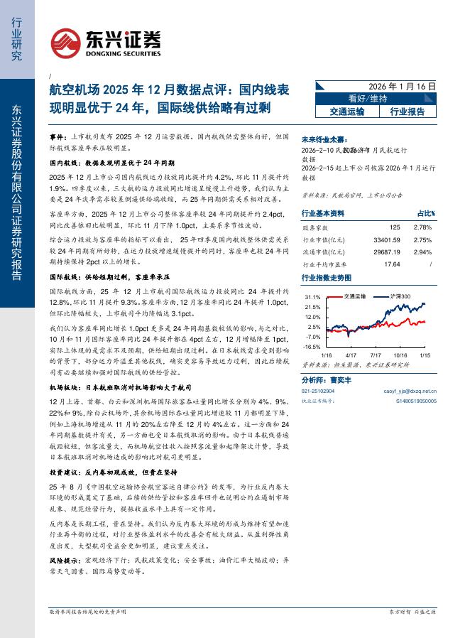 东兴证券:航空机场2025年12月数据点评:国内线表现明显优于24年,国际线供给略有过剩.pdf