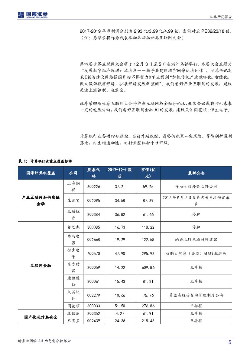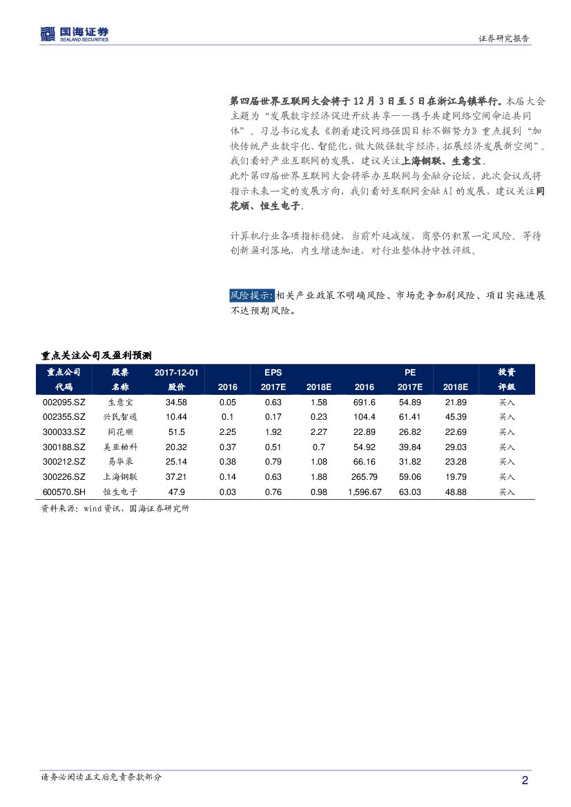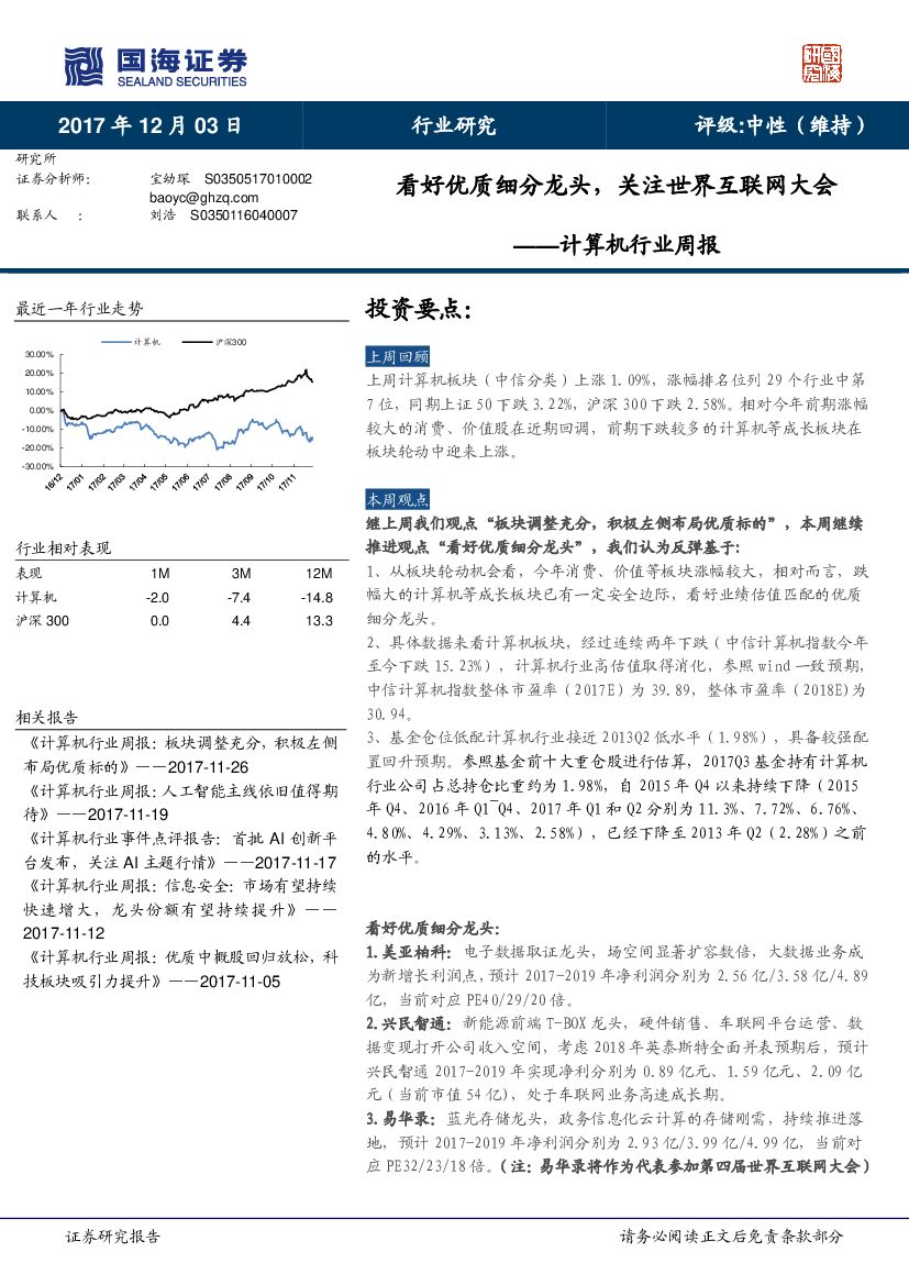 国海证券:计算机行业周报:看好优质细分龙头,关注世界互联网大会.pdf