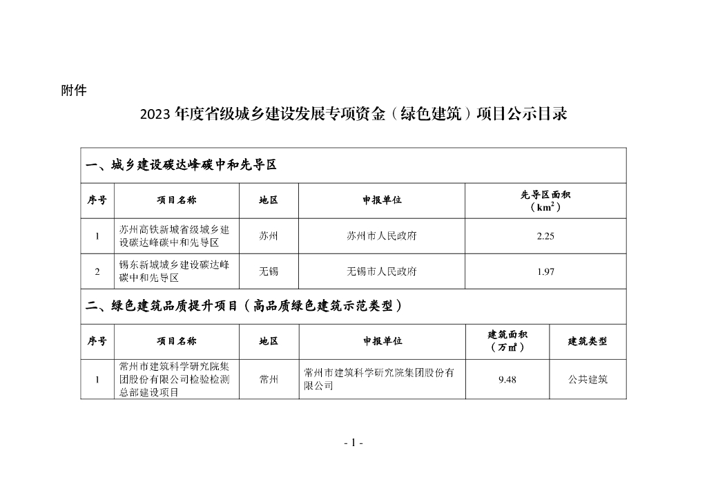 2023年度省级城乡建设发展专项资金(绿色建筑)项目公示目录.pdf