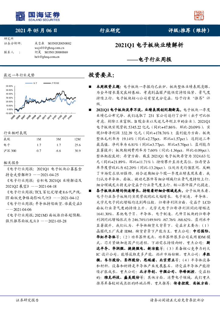 国海证券:电子行业周报:2021Q1电子板块业绩解析.pdf