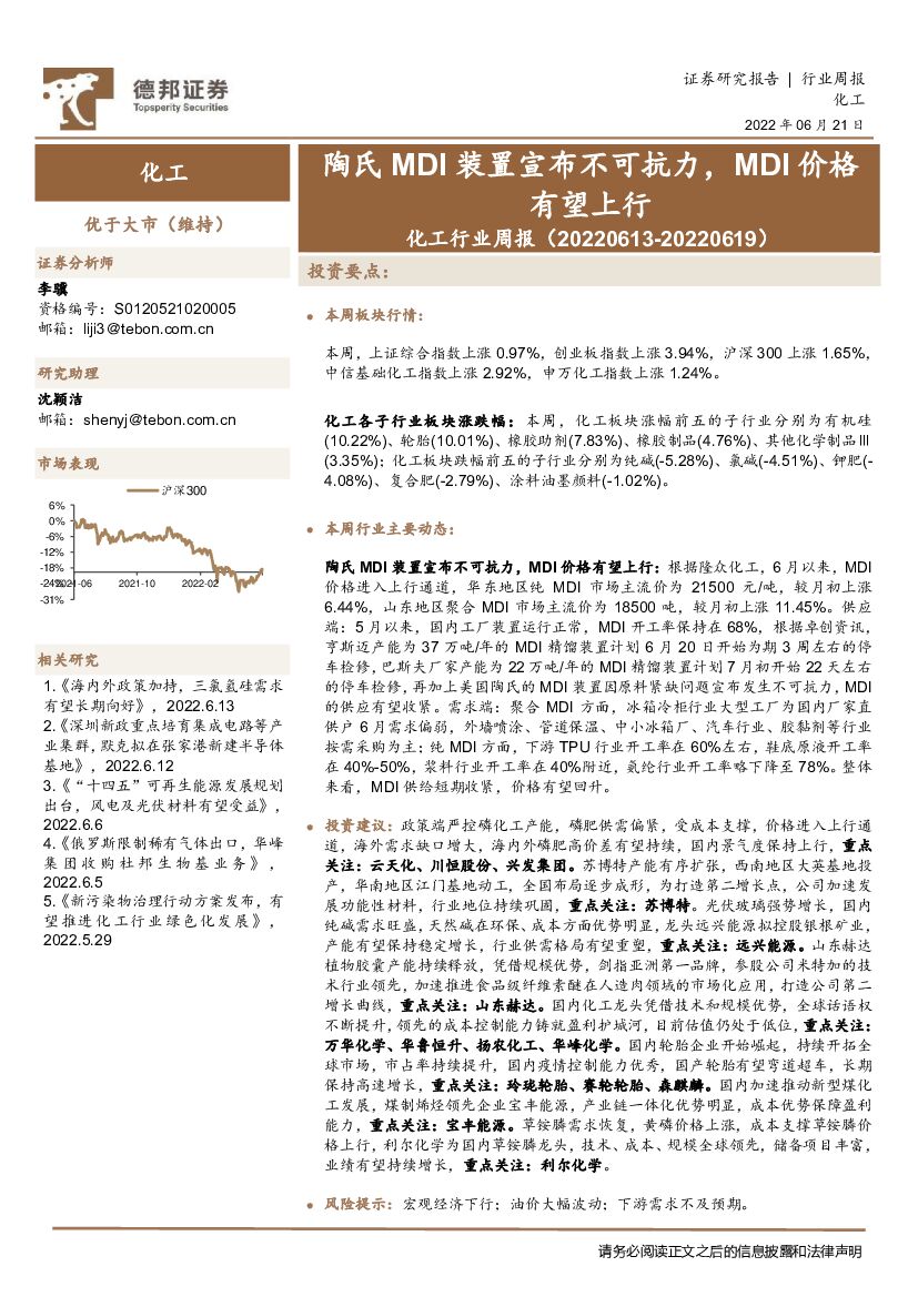 德邦证券:化工行业周报:陶氏MDI装置宣布不可抗力,MDI价格有望上行.pdf