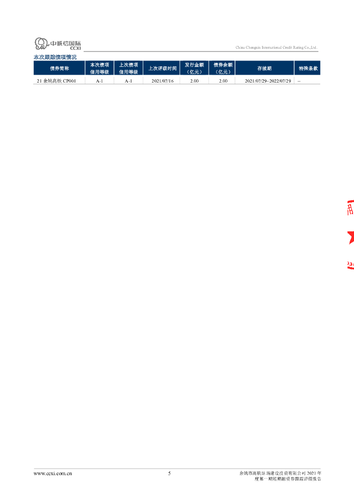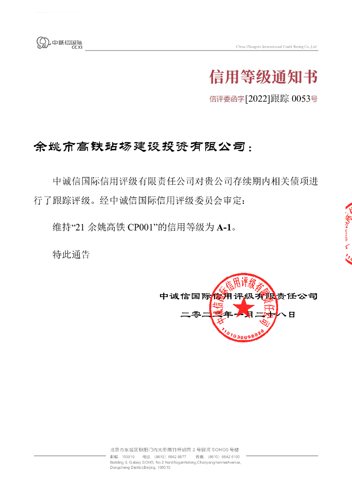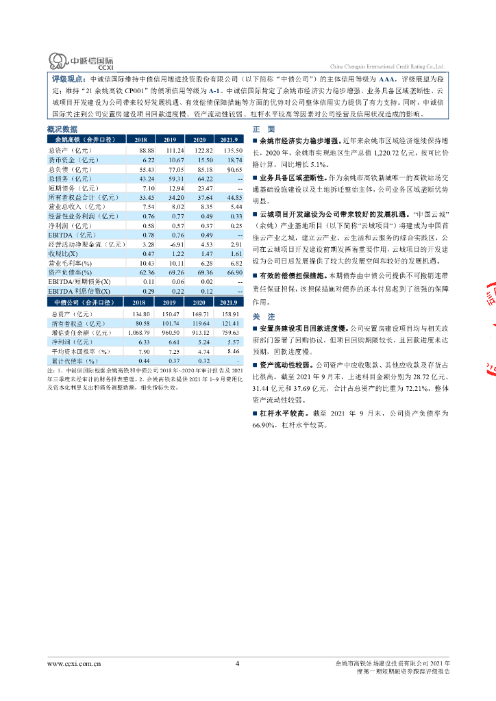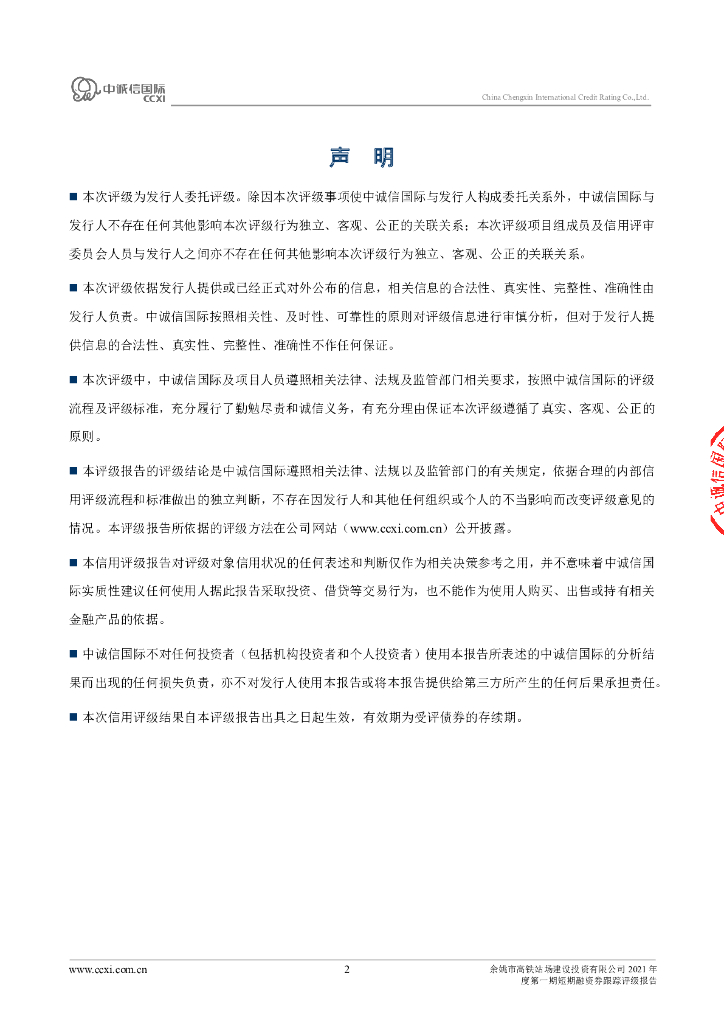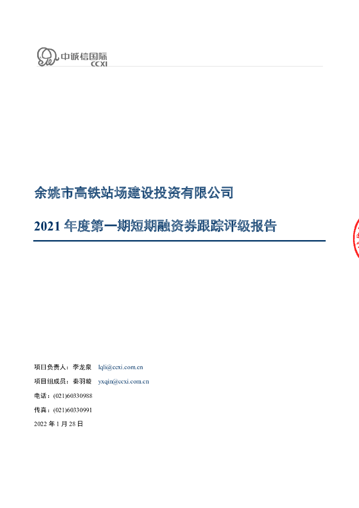 中诚信:余姚市高铁站场建设投资有限公司2021年度第一期短期融资券信用评级报告.pdf