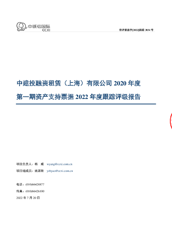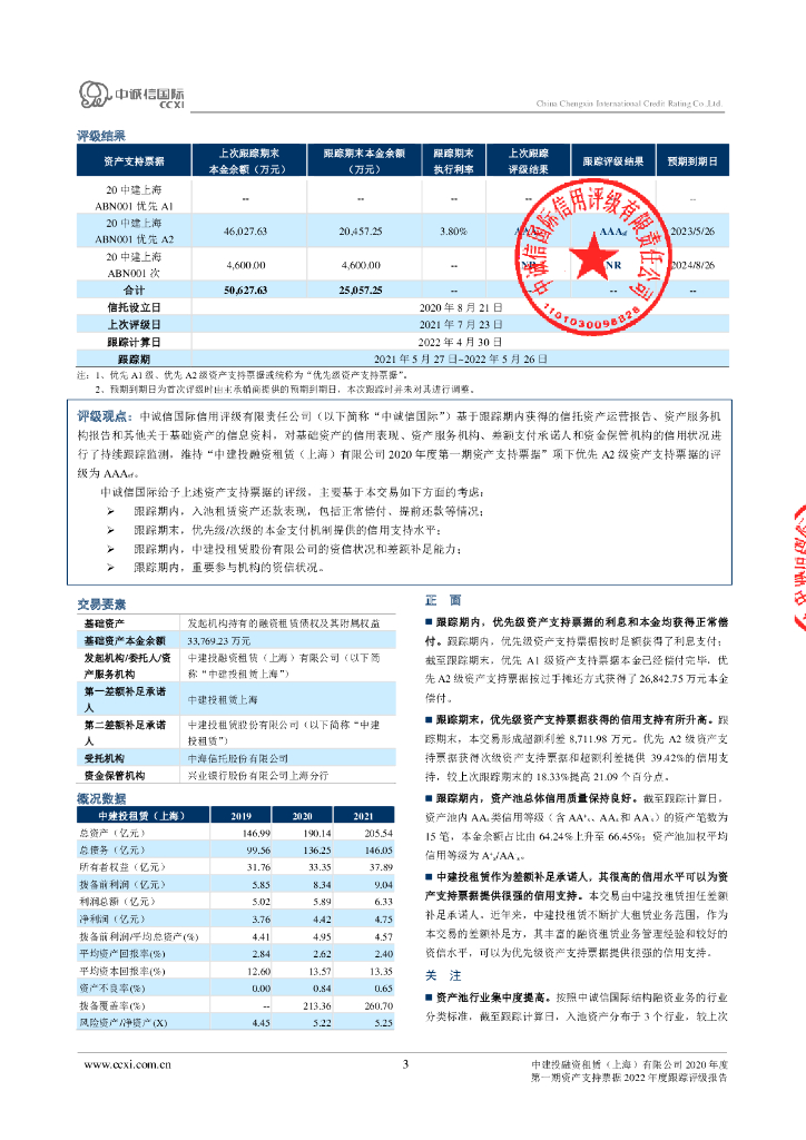 中诚信:中建投融资租赁(上海)有限公司2020年度第一期资产支持票据2022年度跟踪评级报告.pdf