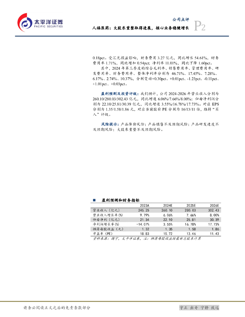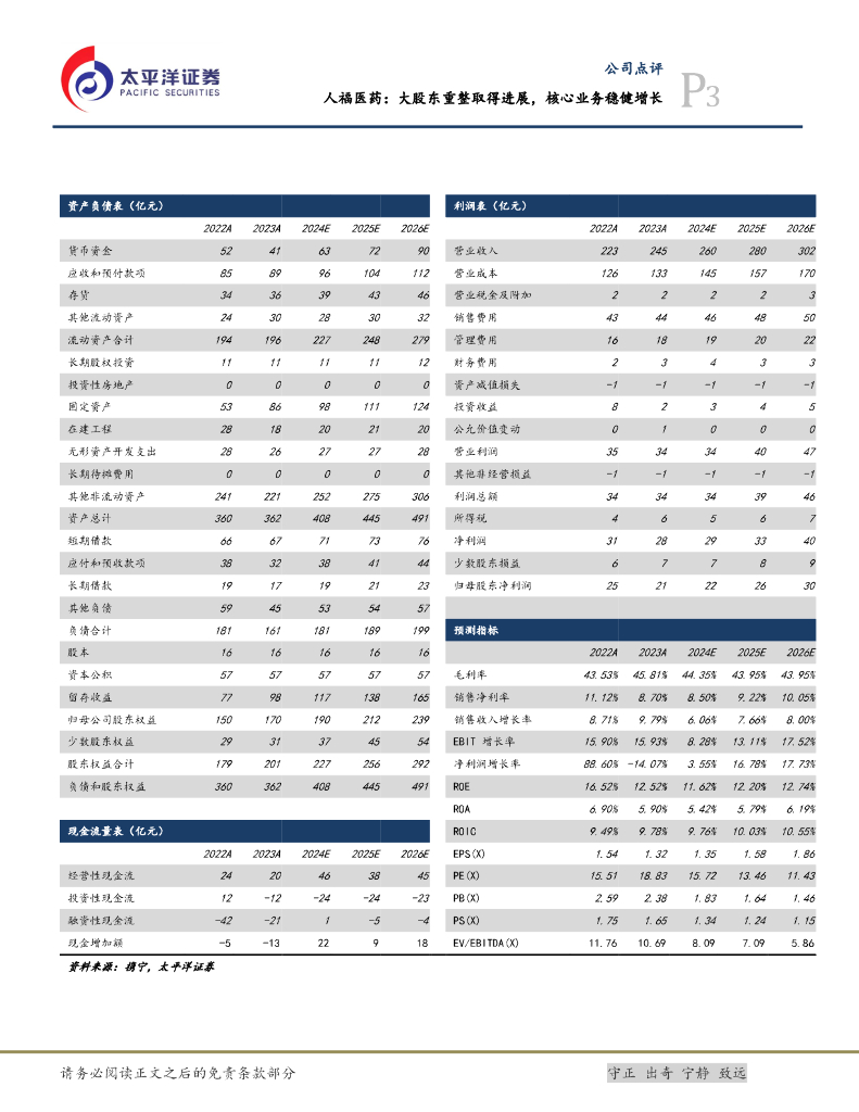 太平洋证券:人福医药:大股东重整取得进展,核心业务稳健增长.pdf