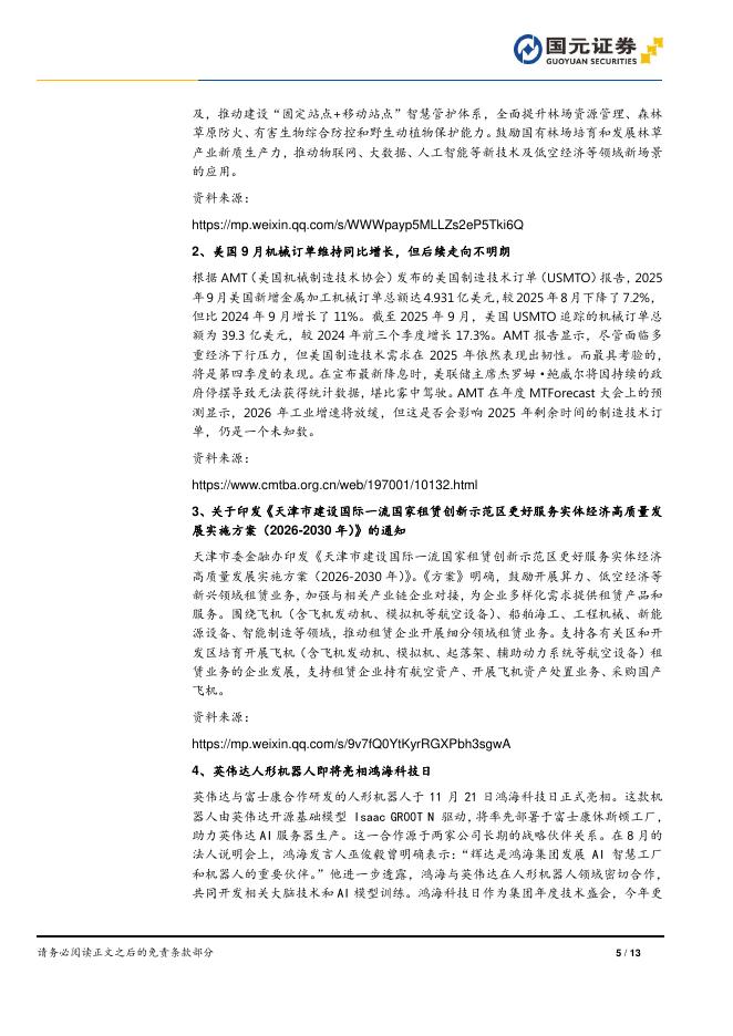 国元证券:机械行业周报:低空稳健发展,出口增长强劲.pdf