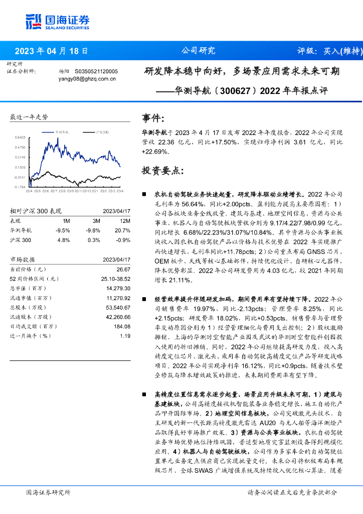 国海证券:华测导航(300627)-2022年年报点评:研发降本稳中向好,多场景应用需求未来可期.pdf