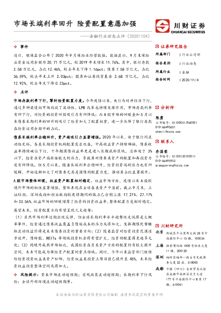 川财证券:金融行业动态点评:市场长端利率回升 险资配置意愿加强.pdf