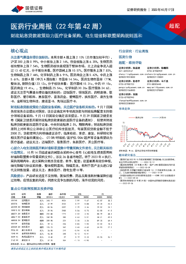 国信证券:医药行业周报(22年第42周):财政贴息贷款政策助力医疗设备采购,电生理省际联盟采购规则温和.pdf