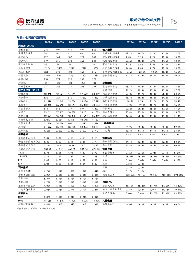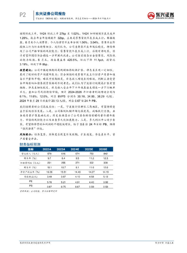 东兴证券:宁波银行(002142)-2024年半年报点评:规模继续高增,净息差有韧性.pdf