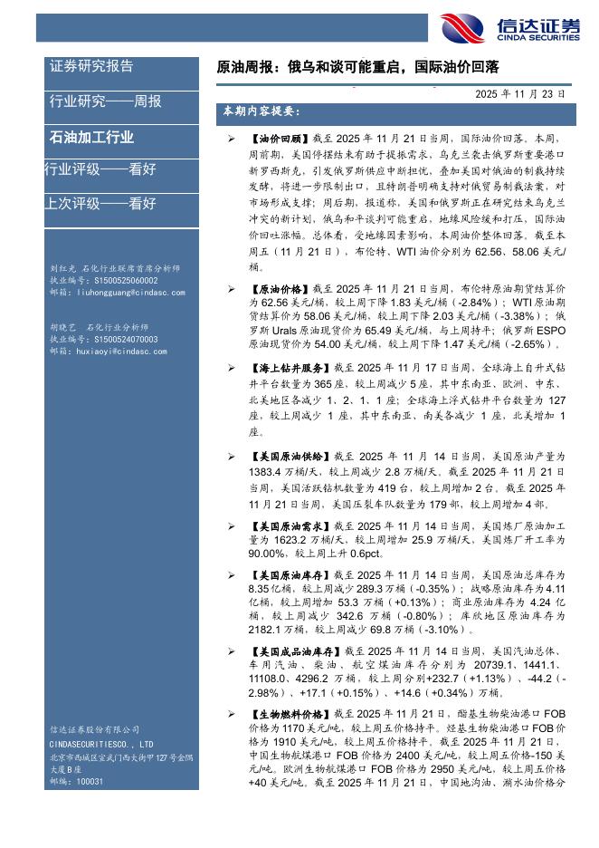 信达证券:石油加工行业原油周报:俄乌和谈可能重启,国际油价回落.pdf