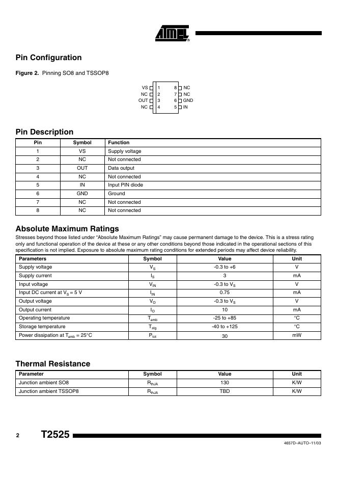ATMEL T2525 IR receiver assp 数据手册.pdf
