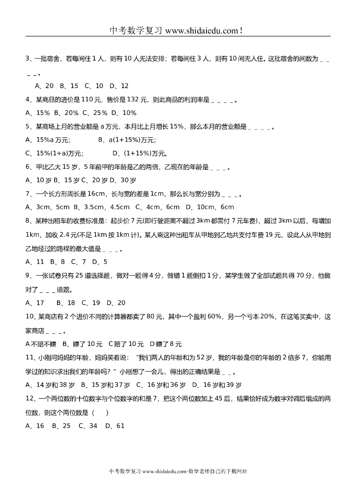 初中数学中考复习专题-一元一次方程练习试题1【含答案解析】.doc