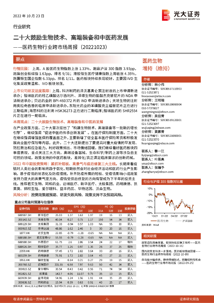 光大证券:医药生物行业跨市场周报:二十大鼓励生物技术、高端装备和中医药发展.pdf