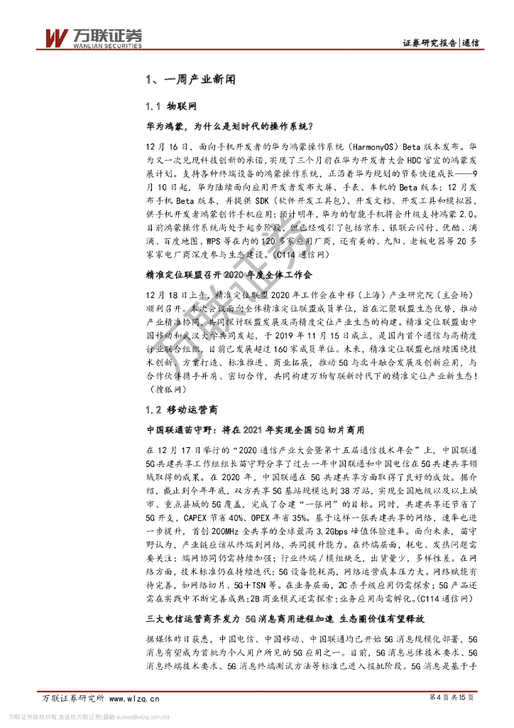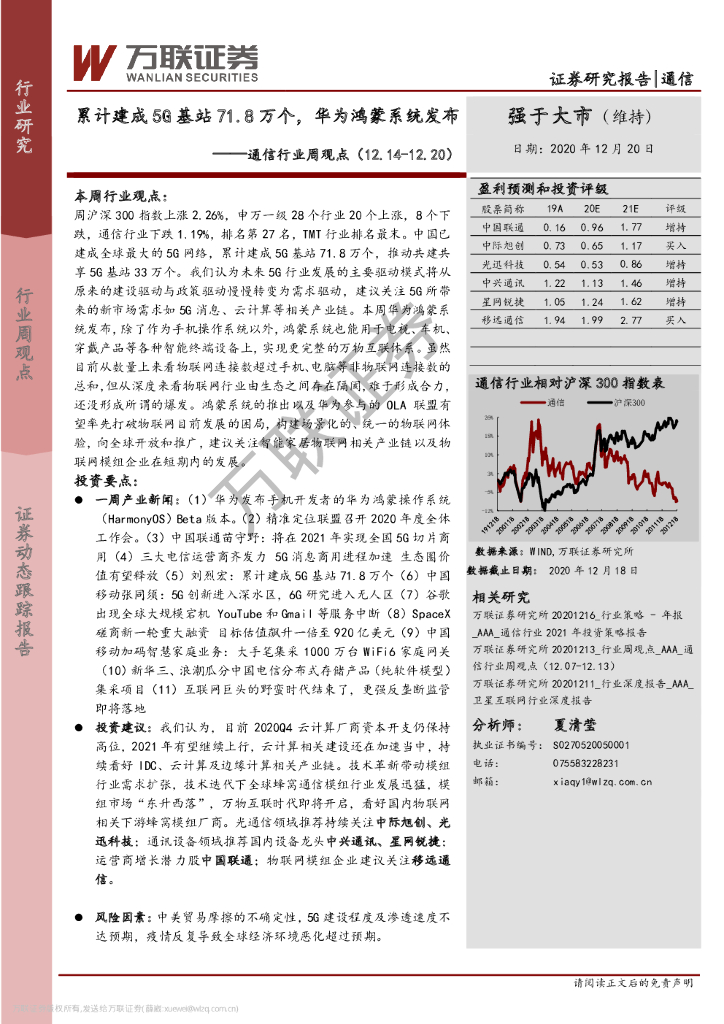 万联证券:通信行业周观点:累计建成5G基站71.8万个,华为鸿蒙系统发布.pdf