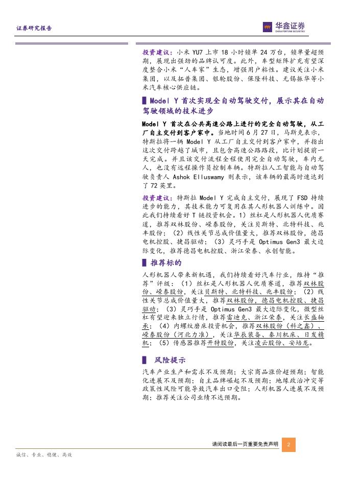华鑫证券:汽车行业周报:小米YU7上市18小时锁单突破24万台,特斯拉ModelY首次实现全自动驾驶交付.pdf