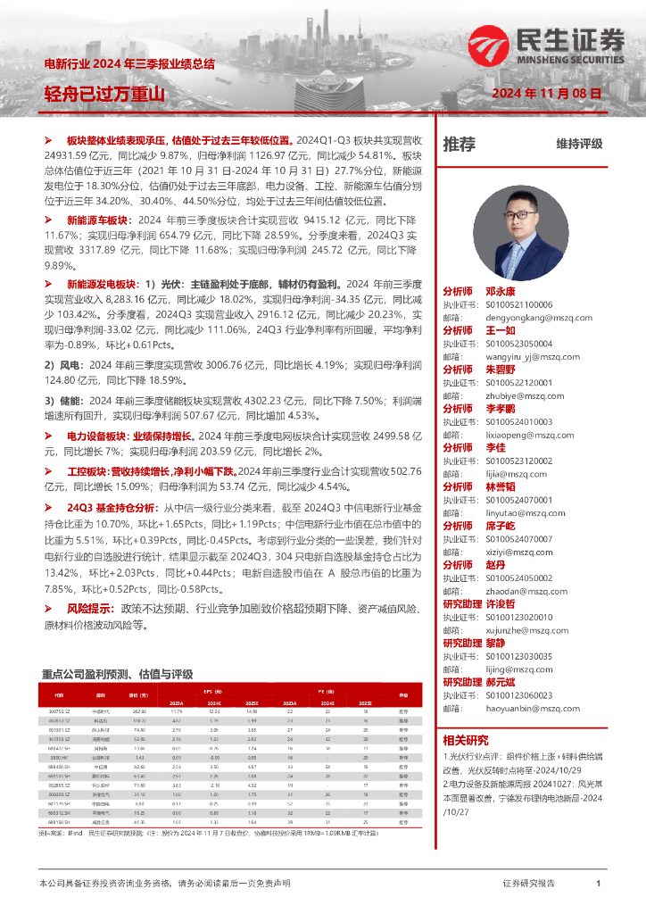 民生证券:电新行业2024年三季报业绩总结:轻舟已过万重山.pdf