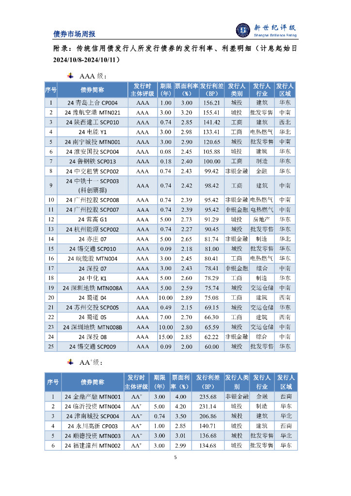 新世纪评级:债券发行规模有所下滑 发行利率、利差大幅上升——债券市场周报(2024/10/08-10/11).pdf