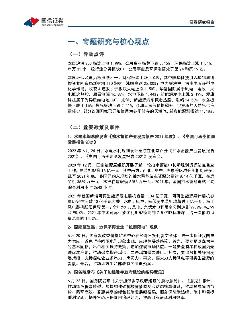国信证券:环保公用2022年6月第4期:《抽水蓄能产业发展报告2021》发布,资源规模达16亿千瓦,已纳入规划8亿千瓦.pdf