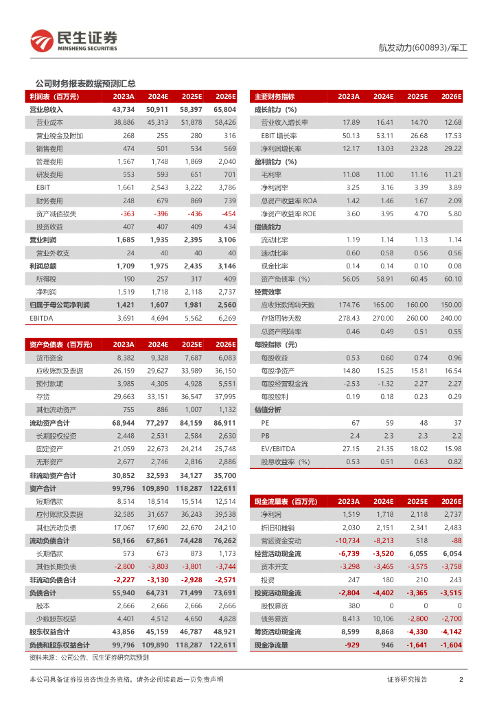 民生证券:航发动力(600893)-2024年一季报点评:1Q24归母净利快增76%;西航业绩增长喜人.pdf
